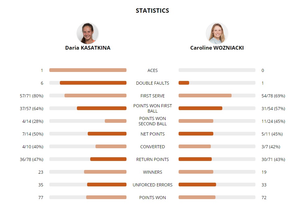 Каролин Возняцки (Дания) – Дарья Касаткина (Россия) – 6:7(5), 3:6