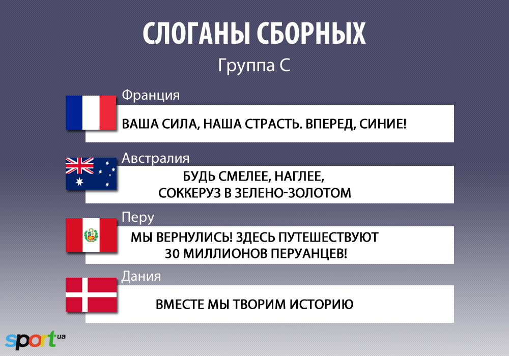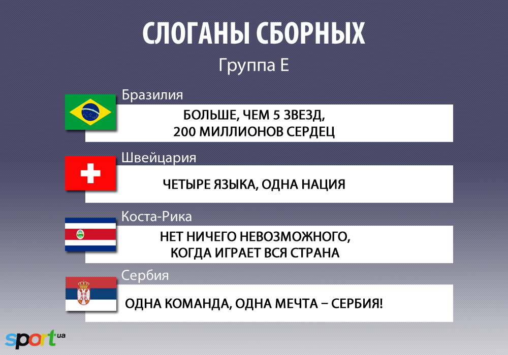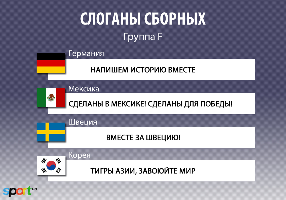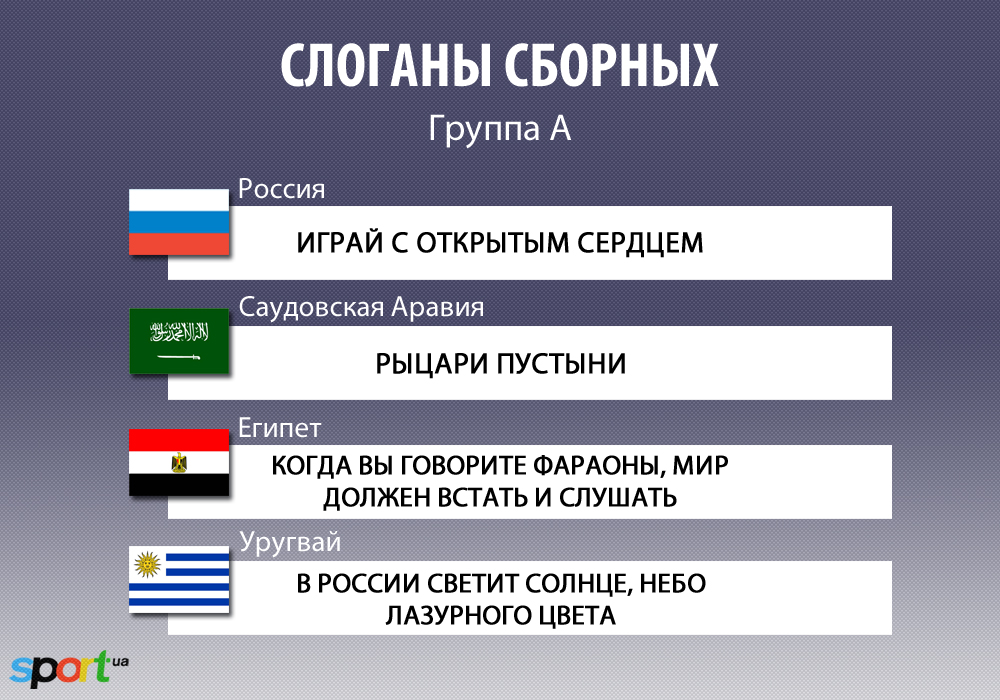 Sport.ua собрал воедино слоганы 32-х сборных-участниц чемпионата мира.