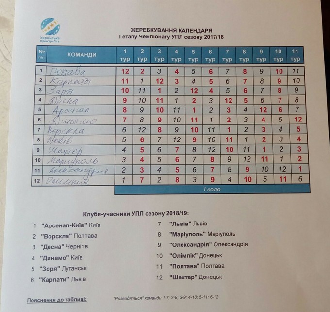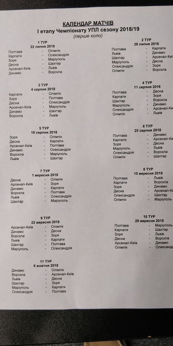 Стал известен календарь первого этапа украинской Премьер-лиги в сезоне 2018/2019.