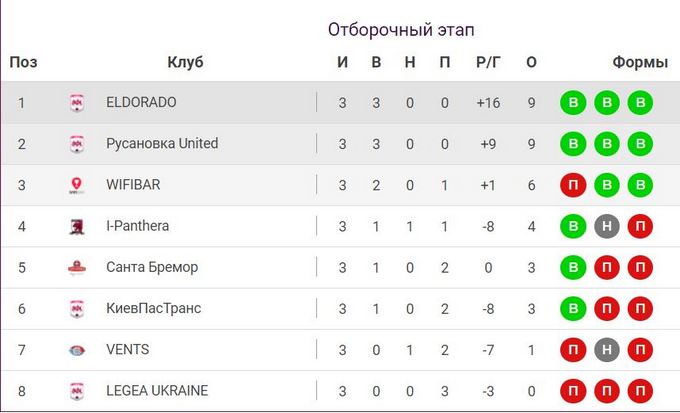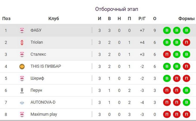 Турнирная таблица First League по итогам 3-х сыгранных туров: