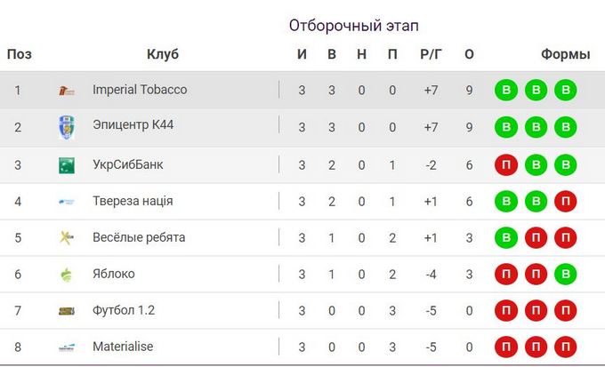 Турнирная таблица Corporate League по итогам 3-х сыгранных туров: