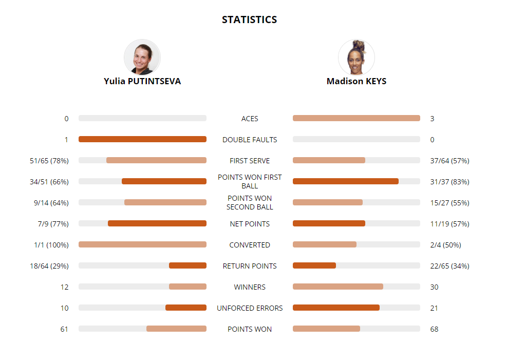 Юлия Путинцева – Мэдисон Кис – 6:7(5), 4:6