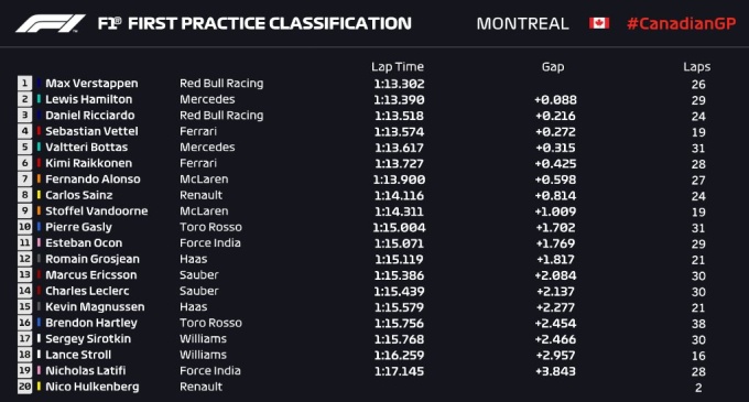 Первая практика в Канаде. Ферстаппен лучший, прогресс Макларена