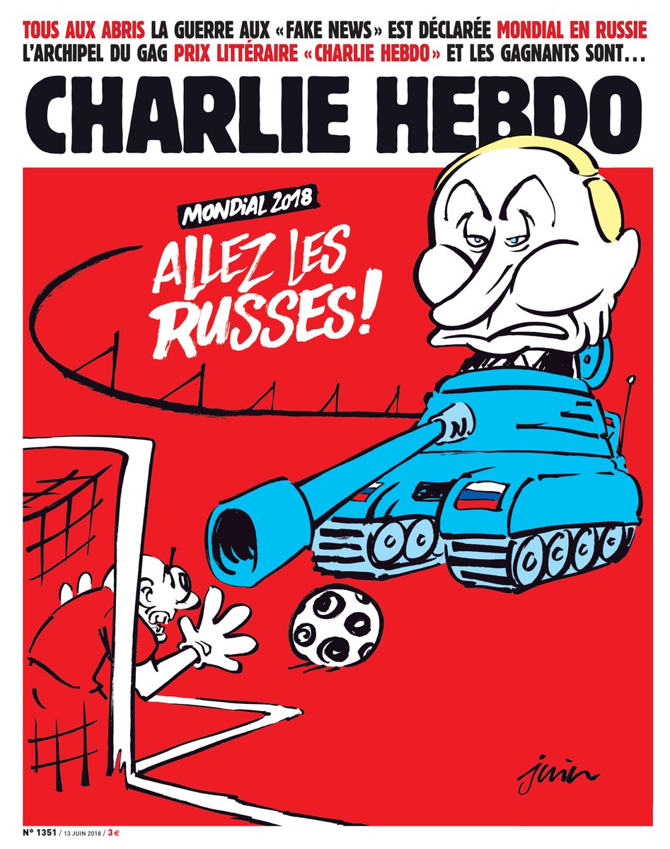 Известный французский сатирический журнал Charlie Hebdo посвятил выпуск чемпионату мира по футболу, который совсем скоро стартует в России.