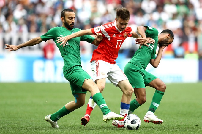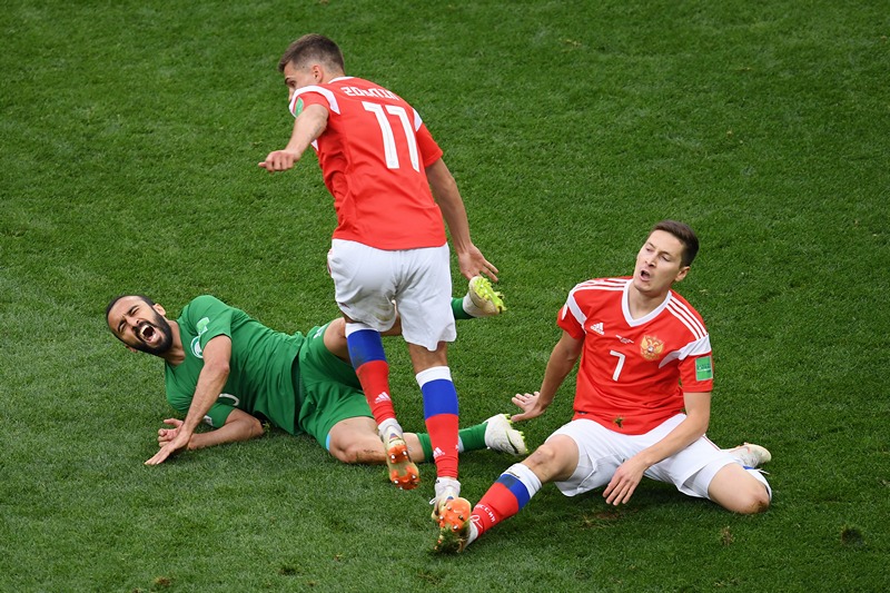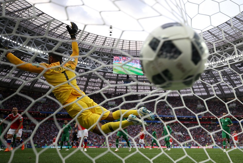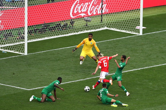 В первом матче чемпионата мира по футболу сборная России со счетом 5:0 разгромила сборную Саудовской Аравии.