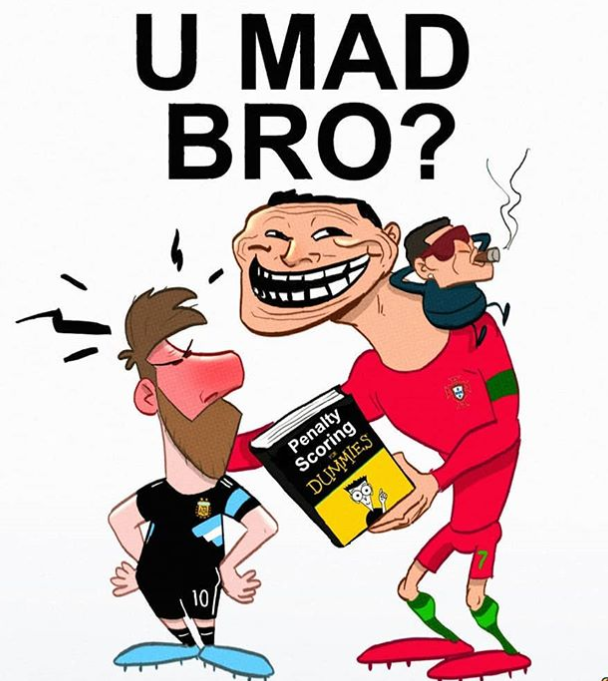 Момани высмеял Лионеля Месси в матче против сборной Исландии: на 64-й минуте встречи аргентинец не реализовал пенальти, и команды сыграли вничью. Криштиану Роналду, напротив, оформил хет-трик в игре против испанцев – один из мячей в ворота Давида де Хеа португалец провел как раз с пенальти.