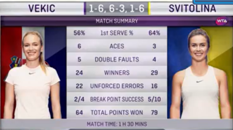 Элина Свитолина (Украина) – Донна Векич (Хорватия) – 6:1, 3:6, 6:1
