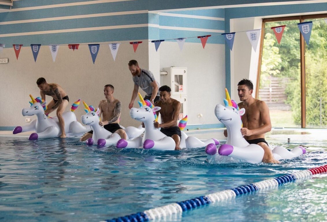 Сборная Англии искупалась в бассейне с надувными единорогами
