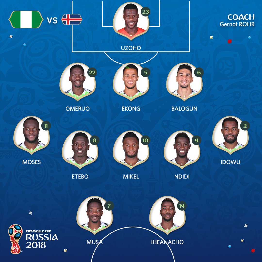 Стали известны стартовые составы на матч второго круга группового этапа чемпионата мира между командами Нигерии и Исландии.