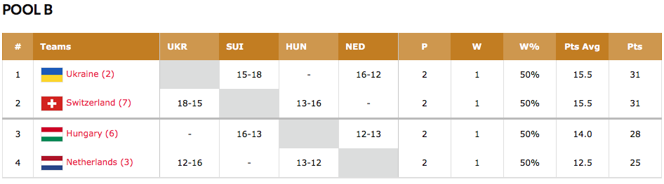 Тож після першого ігрового дня в активі команди Юшкіна 1 перемога у 2 матчах. Завтра, 24 червня, наші хлопцям, які програли перший матч Швейцарії, обов’язково потрібна перемога у грі проти Угорщини для виходу у півфінал і продовження боротьби за місце у фінальній частині континентальної першості.