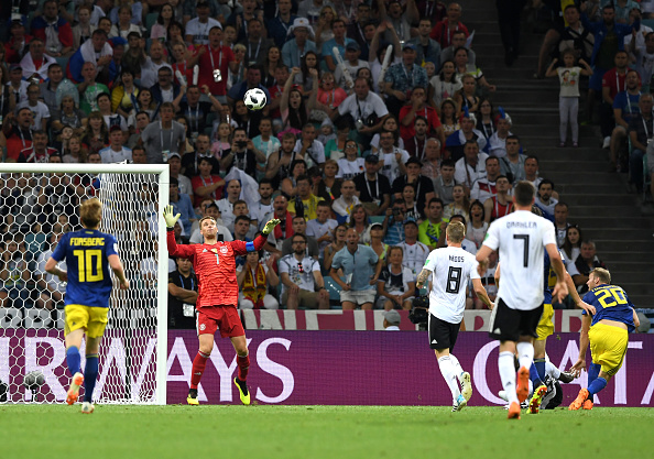 Немцы продолжали действовать как-то заученно, методично и достаточно прямолинейно. У шведов не оказалось таких скоростей, как у латиноамериканцев, однако контратаковали они все равно очень опасно. В одном из эпизодов Берга свалили в штрафной площади Нойера, однако судья не решился указать на одиннадцатиметровую отметку. Хотя нарушение правил там все-таки было. Как тут не вспомнить слова наставника сербов Кстаича про то, что система видеоповторов существует только для избранных…Однако и этот сигнал для все еще чемпионов мира не стал тревожным звонком. Спустя некоторое время шведы их таки наказали. Причем в том же стиле, через зону центральных защитников. Ни Боатенг, ни Рюдигер не обратили должного внимания на Тойвонена, и тот запросто перебросил мяч через голкипера. В первом тайме немцы так и не смогли создать что-то путное у чужих ворот. Весь свой креатив они отложили на вторую половину встречи.