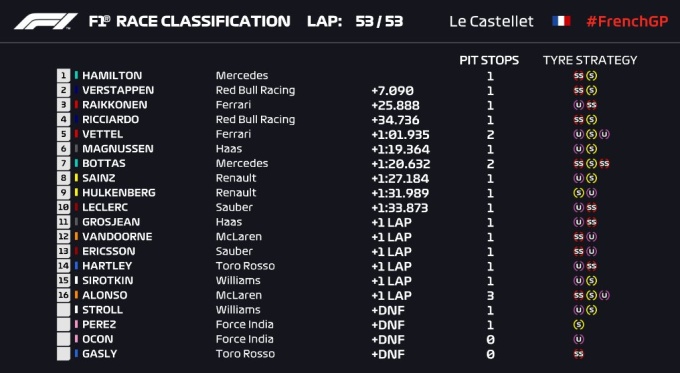 В конце этапа стоит отметить Райкконена, который догнал и перегнал Риккардо, сумев подняться на подиум. Неплохой результат для финна, которого сейчас критикуют со всех сторон.