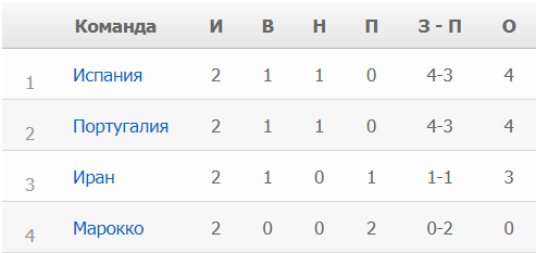 - Португалия выйдет из группы, если не проиграет Ирану. Если покажет лучший результат, чем Испания в параллельном матче – с первого места.