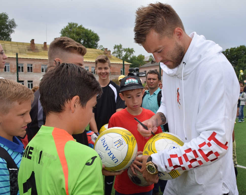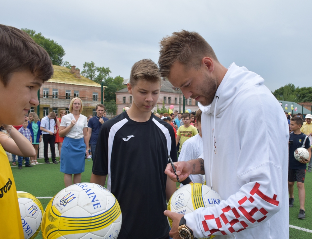 Вингер дортмундской «Боруссии» и сборной Украины Андрей Ярмоленко принял участие в открытии новой площадки для игры в мини-футбол с искусственным покрытием в Александрии.