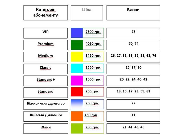 Напомним, что в прошлом сезоне абонементы стоили от 140 до 5600 гривен.