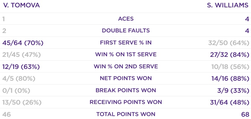 Серена Уильямс (США) – Виктория Томова (Болгария) – 6:1, 6:4