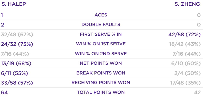 Симона Халеп (Румыния) – Чжэн Сайсай (Китай) – 7:5, 6:0