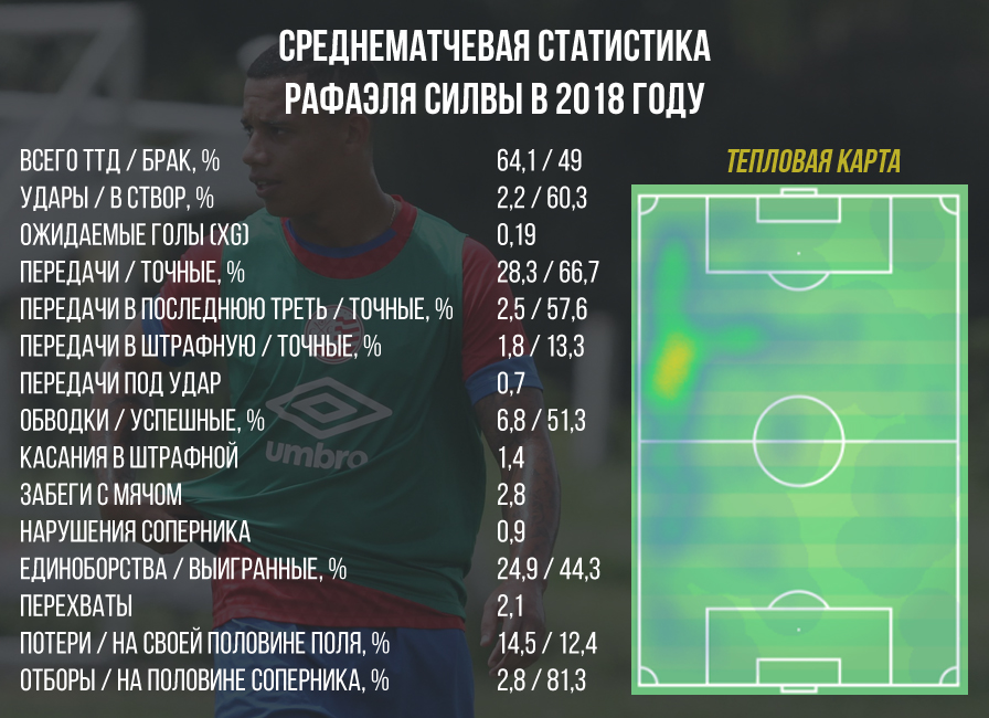 Пока Рафаэль Силва не может похвастаться и общей остротой своих действий. Если оценивать его показатель ожидаемых голов (xG), то он почти вдвое меньше, нежели у Юри (0,19 против 0,36), а также недотягивает до стараний Давида Фаупалы (0,29) и Артема Громова (0,33).