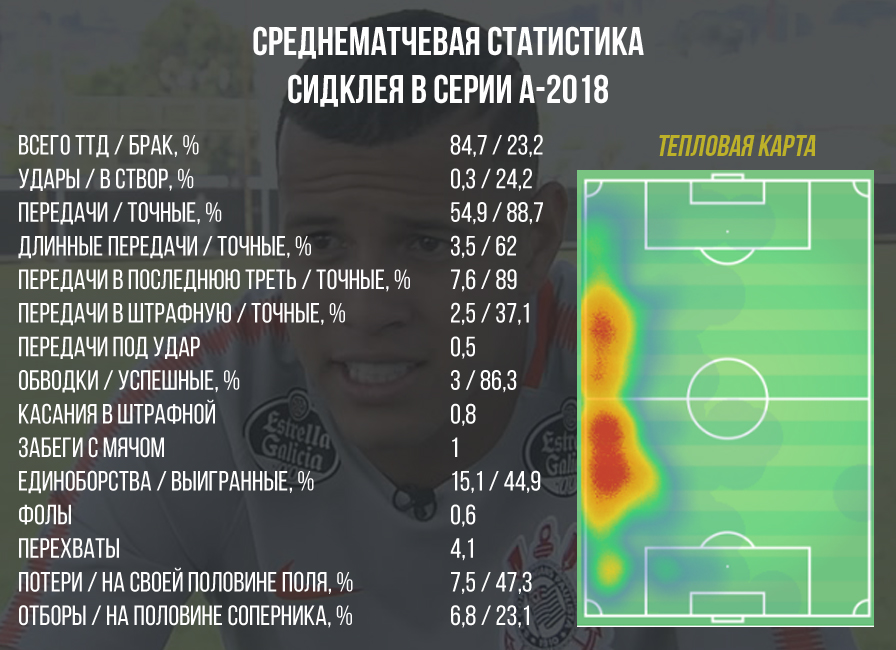 Говоря о действиях Сидклея в атаке, стоит отметить, что он довольно часто пытается снабдить партнеров по команде пасами, направленными в последнюю треть поля. Здесь у новичка «Динамо» прекрасный показатель точности (89%). Что интересно, в «Коринтиансе» в текущем сезоне Сидклей неплохо взаимодействовал с Майконом, который в нынешнее трансферное окно был продан за 6,6 миллиона евро в «Шахтер».
