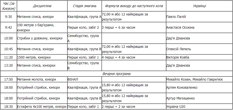 Прямая трансляция и расписание выступлений украинцев 13 июля