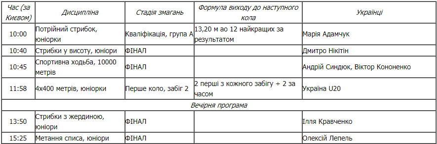Прямая трансляция и расписание выступлений украинцев 14 июля