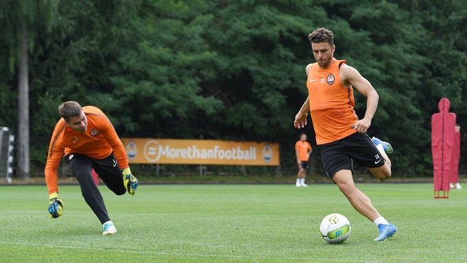 До старта нового сезона остаются считаные дни. «Шахтер» готовится к поединку с «Динамо» на загородной базе «Святошин». Утренняя тренировка началась с короткой разминки в фитнес-центре, затем уже на газоне футболисты работали над точностью передач в касание на ограниченном пространстве, а также быстрым переходом из обороны в атаку. Под конец сессии команду разделили на группы: полузащитники и нападающие под руководством Нуну Кампуша занимались моделированием атакующих действий, а защитники вместе с Паулу Фонсекой осваивали организацию игры в обороне.