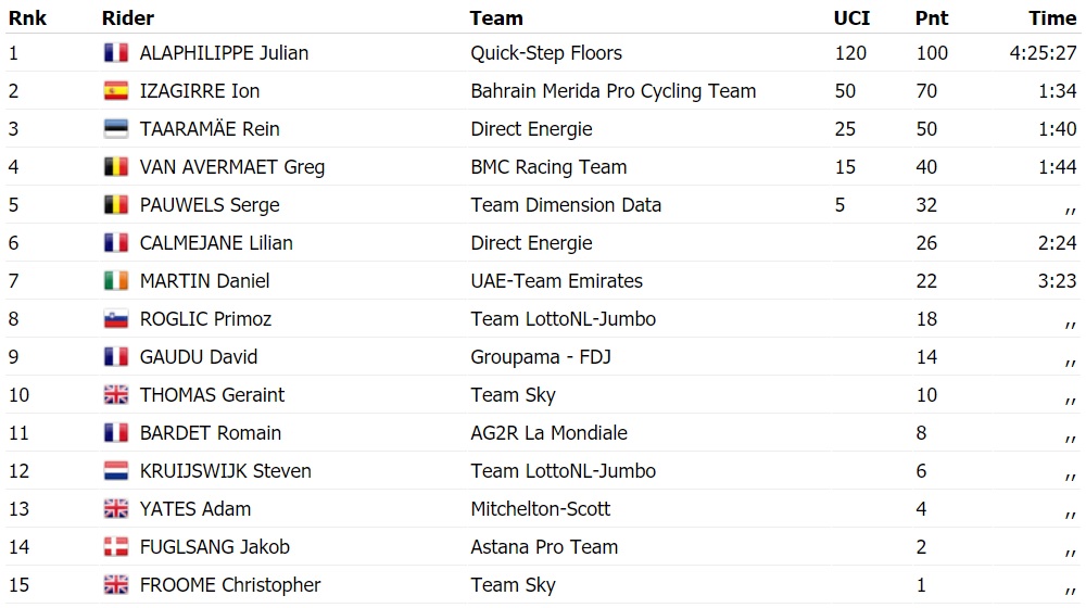 Джулиан Алафилиппе из Quick Step Floors одержал победу на этапе Тур де Франс. Это первый триумф велогонщиков из Франции на 105-м по счету Тур де Франс.