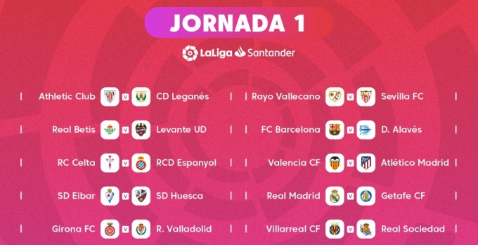 Чемпион «Барселона» начнет защиту титула поединком против «Алавеса», а «Реал» встретится с «Хетафе». Самым интересным противостоянием первого тура является матч «Валенсия» - «Атлетико».