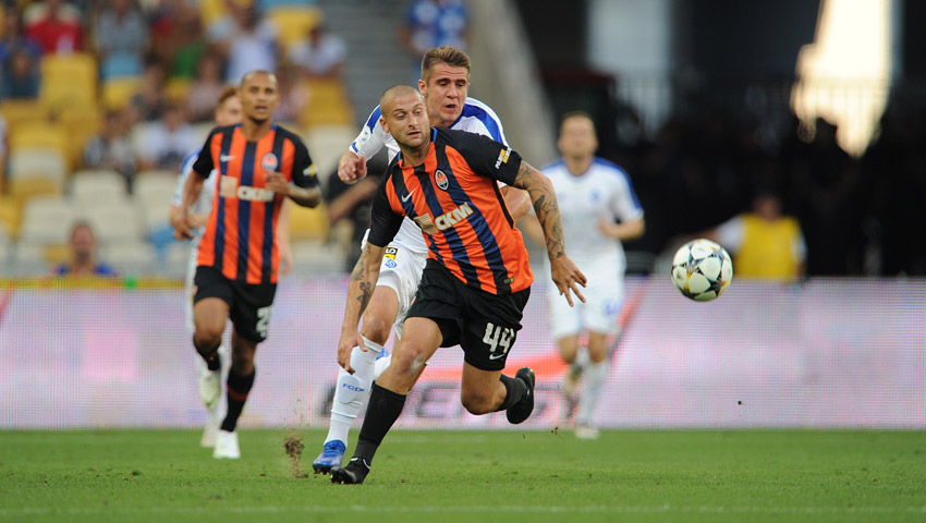 7 мин. Коваленко грубовато сыграл против Буяльского на половине поля Динамо, арбитр сделал устное замечание полузащитнику Шахтера.