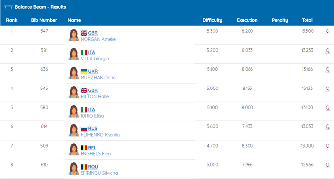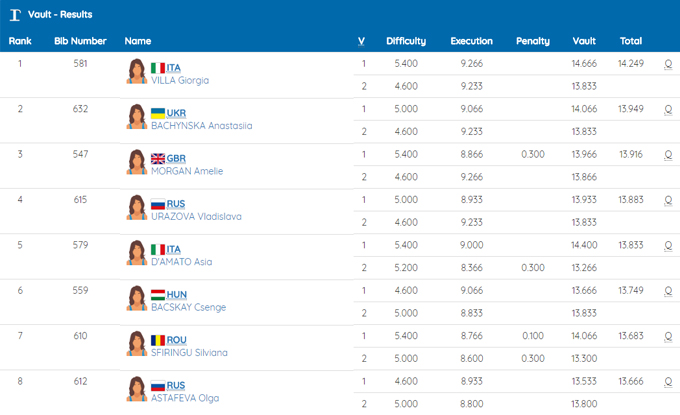 Дарья Муржак показала 3-й результат в квалификации на бревне, а Настя Бачинская выступит в финале на опорном прыжке, у нее 2-й результат квалификации. Полные результаты квалификации в этих видах: