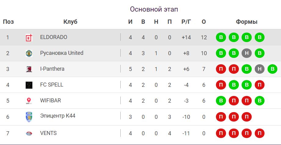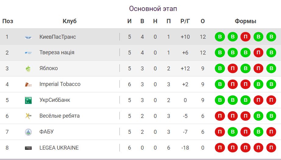 Турнирная таблица Corporate League по итогам пяти туров основного этапа: