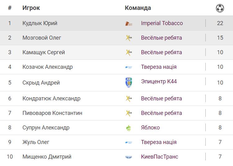Главной неожиданностью в дивизионе First стал результат матча Яблоко – ФАБУ. «Строители» выставили всех своих лучших игроков на этот поединок, и вполне закономерно считались фаворитом, но как-то не пошло. «Фруктовые» совершенно спокойно противостояли, казалось бы, более классному сопернику и реально были лучше. Дубль в составе Яблоко оформил Александр Супрун. Поздравляем черно-синих с такой важной победой, благодаря которой они вошли в тройку в своей лиге.