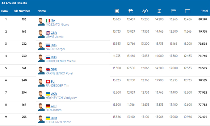 В Глазго завершилась квалификация у юниоров, по результатом котором сразу были определены победители в личном и командном многоборье.