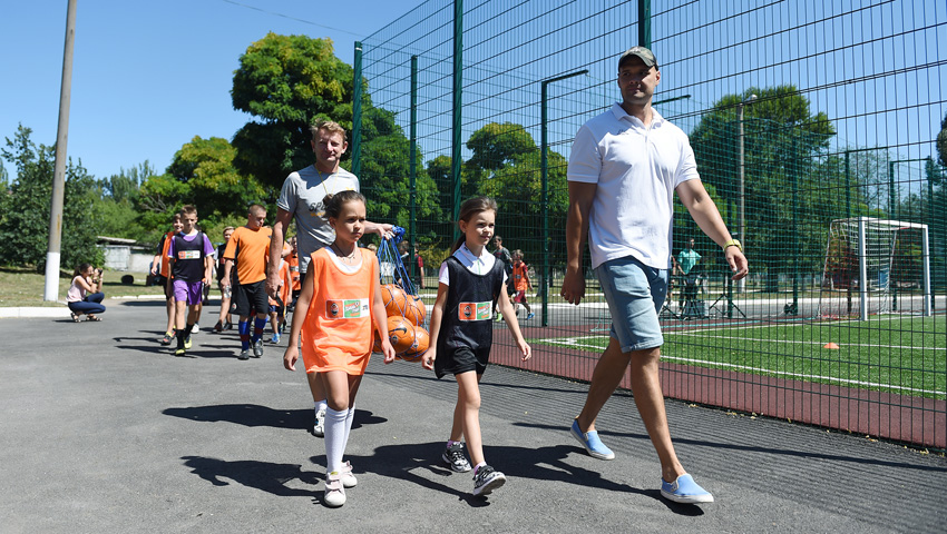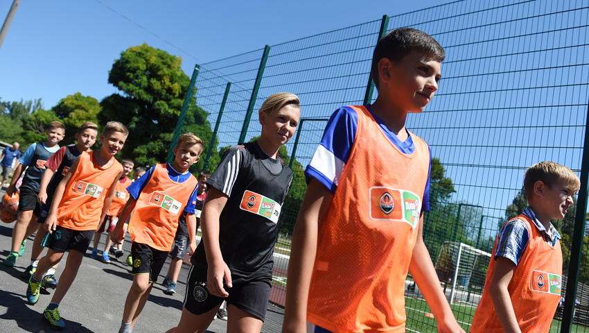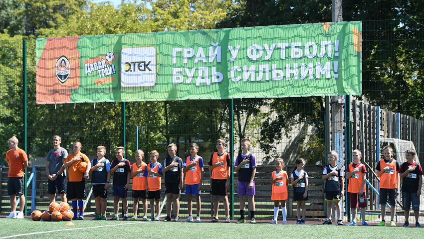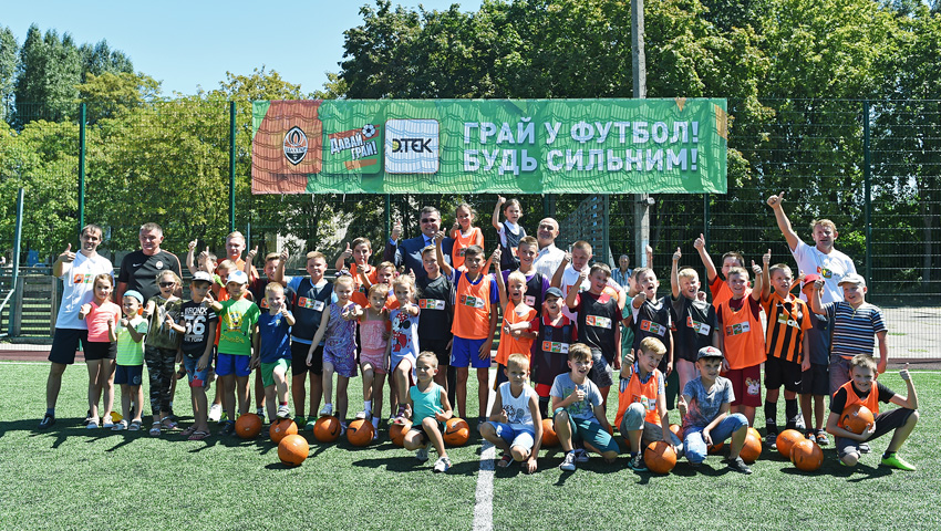 Донецкий «Шахтер» открыл футбольную площадку, возможность бесплатно заниматься футболом в рамках проекта получили более сотни детей Зеленодольска в возрасте от 7 до 12 лет.