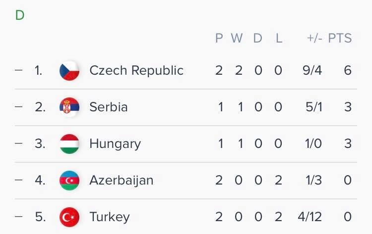 Так само поки без перемоги і збірна Туреччини, яка поступилася тим таки чехам та сербам. По одному зіграному матчу і синхронно по одні перемозі у Сербії та Угорщини.