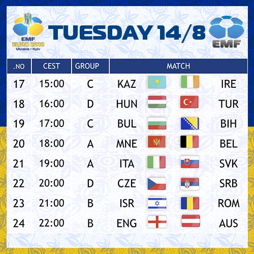 Розклад третього ігрового дня ЧЄ з міні-футболу
