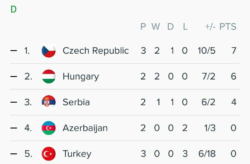 О 16:00 почнуть свій матч Азербайджан та Туреччина із групи D. Обидва колективи є невдахами групи. У третьому матчдеї турки поступилися збірній Угорщини і цей програш офіційно засвідчив виліт збірної Туреччини з турніру. В азербайджанців ще залишаються примарні шанси на вихід. Для цього потрібно перемагати сьогодні.