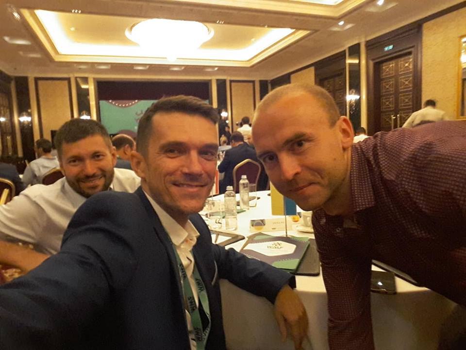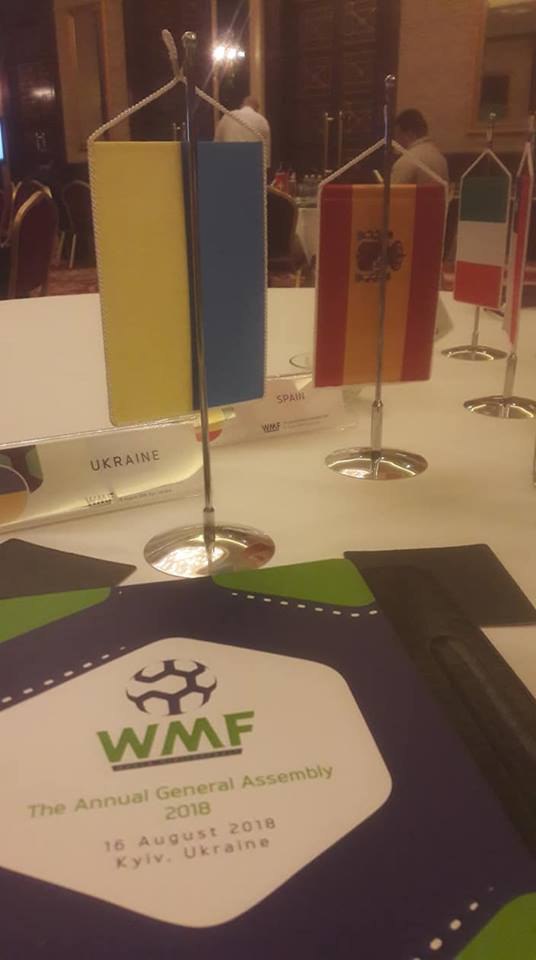 Українська делегація, до речі, теж представлена на конгресі трьома учасниками - президентом Федерації міні-футболу України Євгеном Донцовим, її виконавчим директором Олександром Онопко та директором хост-арени Євро-2018 у Гідропарку Сергієм Харченком. Українська федерація наразі перебуває на стадії оформлення документів на прийняття в члени WMF - світової мініфутбольної федерації.