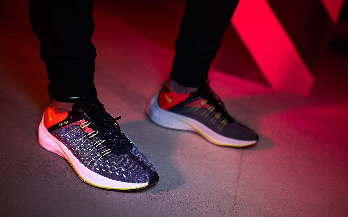 EXP-X14 — це сучасна інтерпретація бігових кросівок 90-х років у поєднанні з останніми технологіями, зокрема, запозиченими в Nike Zoom Vaporfly 4%. Експеримент дизайнерів Nike з перевтілення бігового кросівка у повсякденний, і дав ім’я новій моделі, де «EXP» — скорочення від «експеримент», а «Х14» —кодова назва технології Nike React, що використали у підошві. Цей революційний легкий піноматеріал забезпечує пружну амортизацію з урахуванням анатомії стопи. Оригінальними атрибутами дизайну стали прозорі елементи верху, а також надруковані тексти та цифри. Серед останніх фігурує напис «N3546», який символізує найшвидшу милю Стіва Префонтайна, американського бігуна на середні та довгі дистанції (3 хвилини і 54,6 секунди), як нагадування багатої історії Nike в біговій індустрії.