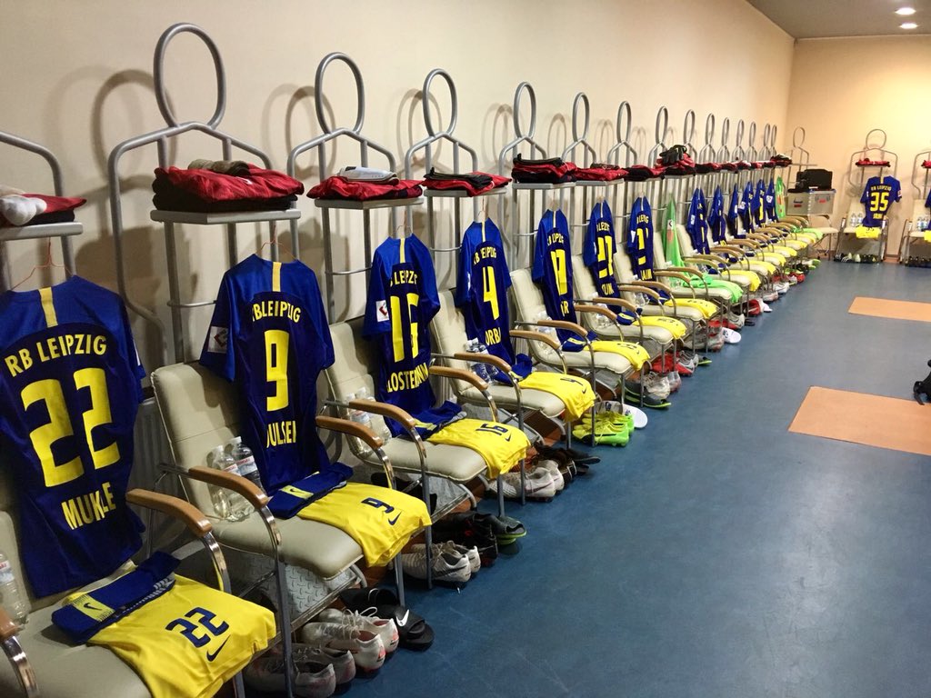 Футболисты Лейпцига ознакамливаются со Славутич-Ареной.