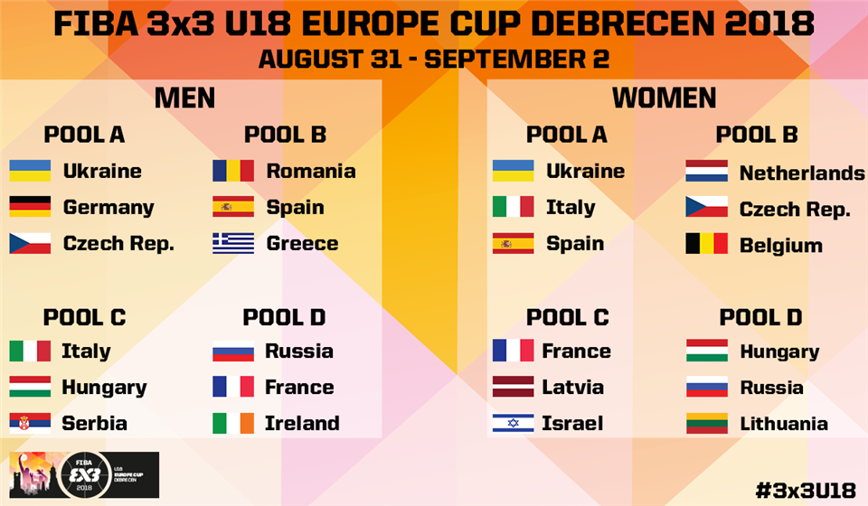Cтали відомі суперники українських збірних з баскетболу 3х3 до 18 років на чемпіонаті Європи, що відбудеться в Дебрецені, Угорщина з 31 серпня по 2 вересня.