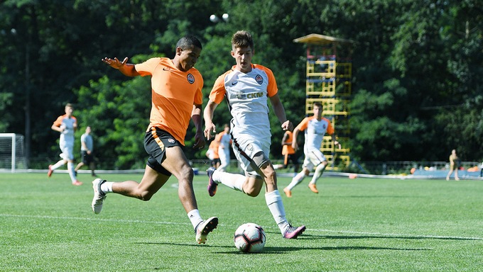 Паулу Фонсека выстроил сессию следующим образом: футболисты, участвовавшие в донецком дерби с «Олимпиком», ограничились силовыми упражнениями в фитнес-центре, а затем получили дополнительную нагрузку в виде двусторонки на трети поля. Для остальных тренерский штаб организовал спарринг с U19.
