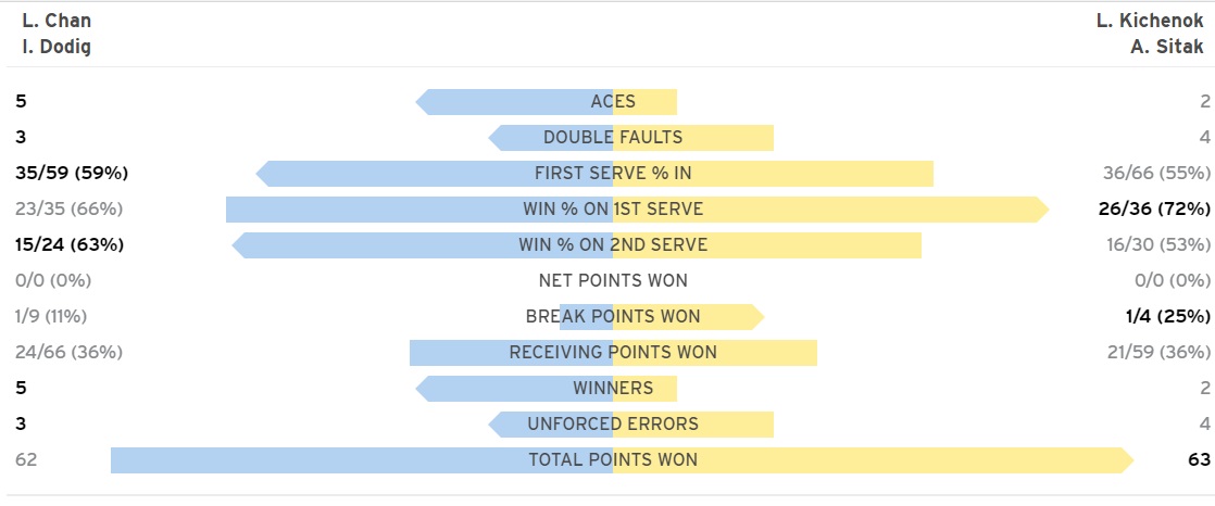 Людмила Киченок / Артём Ситак – Латиша Чань / Иван Додиг – 4:6, 6:3, 8:10