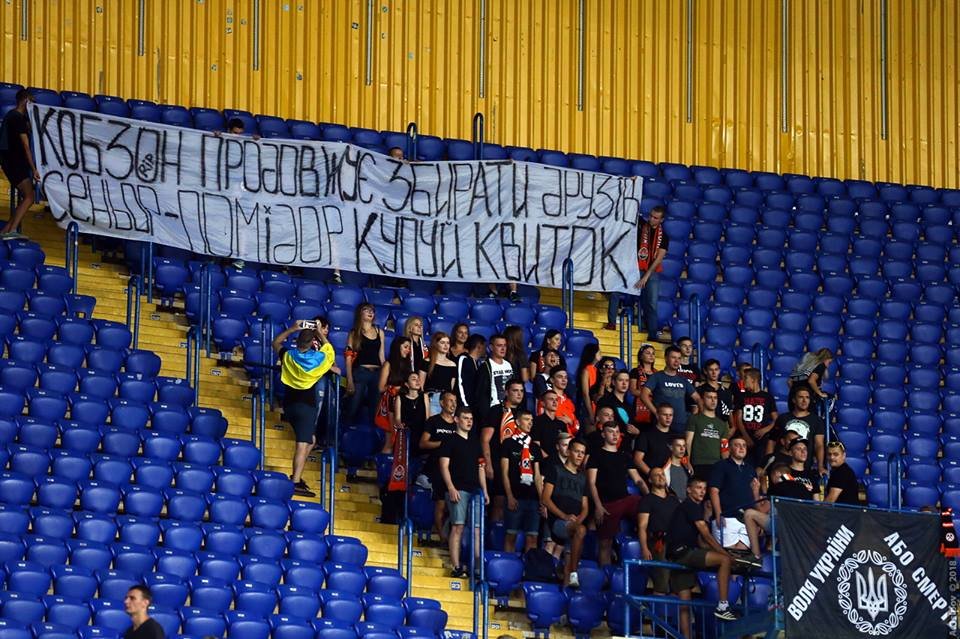Фаны «Шахтера» потроллили нового главу так называемой ДНР – Дмитрия Трапезникова, который ранее (с 2001-го по 2005-й год) работал в клубе менеджером. В Чернигове же фаны «Десны» вывесили баннер, посвященный Иосифу Кобзону.