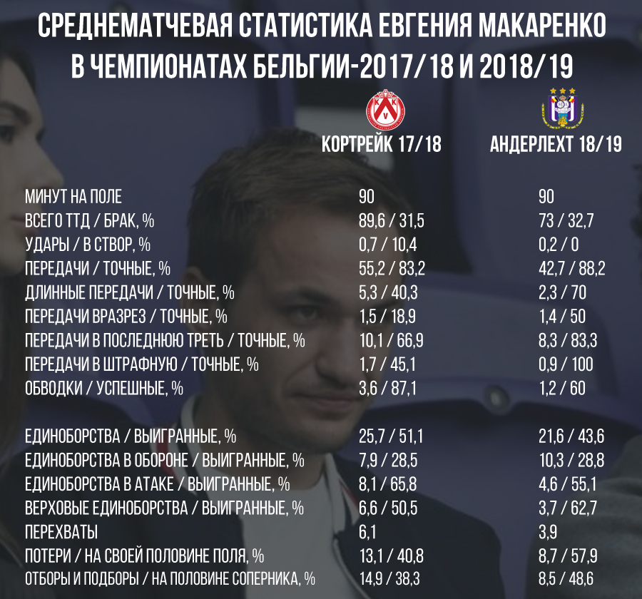 В текущем чемпионате Бельгии Макаренко уже провел четыре поединка за брюссельцев. Во всех выходил с первых минут, во всех «Андерлехт» праздновал победы. Если же посмотреть на индивидуальные действия украинского футболиста, то бросается в глаза весьма солидный объем работы, выполняемый Макаренко в центре поля.