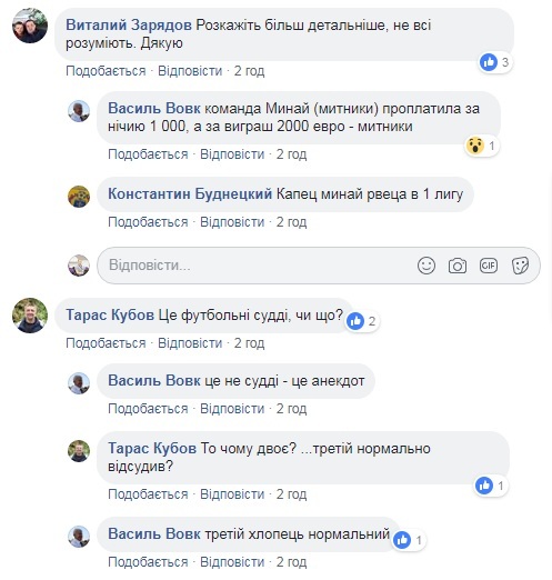 – Команда Минай проплатила за нічию 1000, а за виграш 2000 євро, – відповів Вовк.