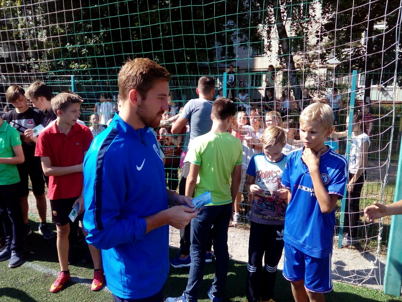 Денис Фаворов, Андрій Слінкін, Олександр Волков, Денис Безбородько та Олександр Філіппов вручили дітлахам квитки та матч та відповіли на численні запитання, як школярів, так і їх вчителів.