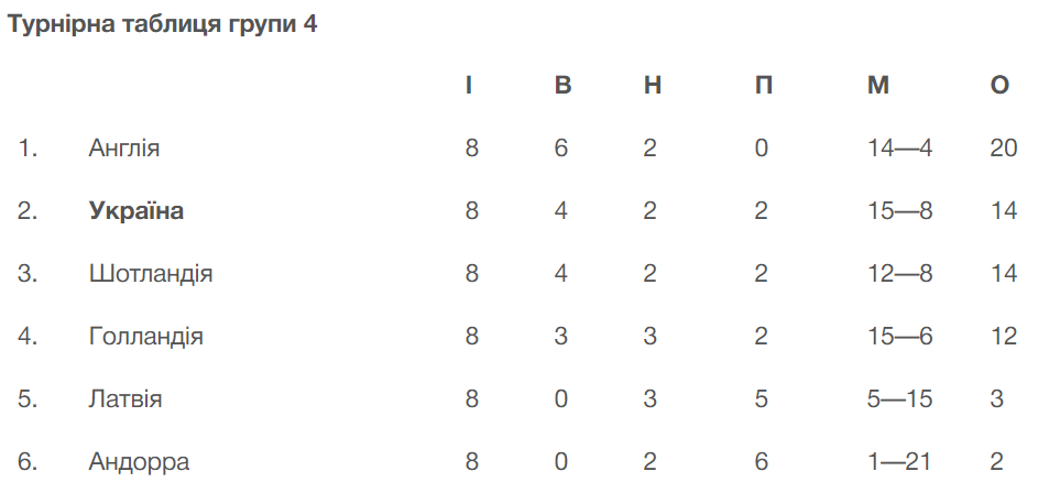 Підопічним Олександра Головка залишилося провести два поєдинки: 12 жовтня — в Києві на «Оболонь-Арені» зі збірною Шотландії та 16 жовтня — з Голландією в Дутінхемі. І якщо для того, щоб фінішувати на другому місці в групі, синьо-жовтим вистачить чотирьох очок (а в теорії за певних обставин — навіть і трьох, і двох), то, аби претендувати на потрапляння до четвірки найкращих других збірних, їм необхідні дві перемоги. 14 золотих очок дозволять нам стежити за перебігом подій в інших групах і сподіватися на свій шанс.