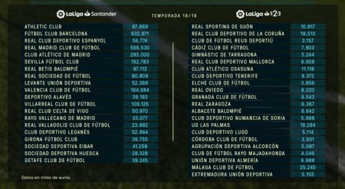 Ла Лига устанавливает потолок зарплат на сезон в зависимости от финансовых показателей клуба таких как доход и ожидаемая прибыль.
