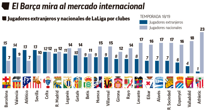 У главного конкурента, «Реала», 11 легионеров и 12 представителей Испании.